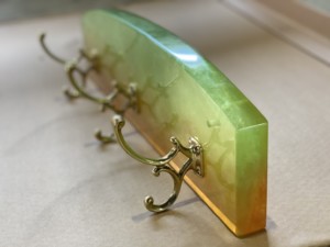オレンジ色+グリーン色の壁掛けにゴールドフックをあしらえてあります。